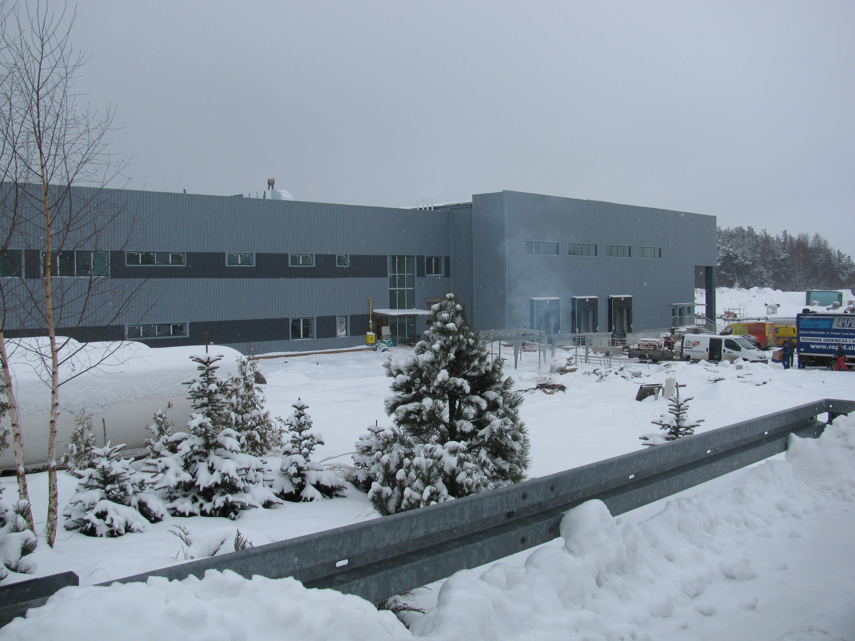 Zakres wykonywanych robót obejmuje: Budynek: fundamenty żelbetowe, konstrukcja budynku stalowa z elementami żelbetowymi, obudowa ścian i dachu z kaset systemowych z wypełnieniem z wełny mineralnej, posadzka w formie płyty betonowej, ściany działowe murowane oraz systemowe z płyt G-K. Instalacje wewnętrzne: instalacja wodociągowa wewnętrzna z systemem hydrantów ppoż., kanalizacja sanitarna i technologiczna, odprowadzenie wód deszczowych z dachu, instalacja wentylacji i klimatyzacji, instalacja chłodnicza, instalacje elektryczne: oświetlenie z oznaczeniem dróg ewakuacyjnych, instalacje gniazd wtykowych, koryta kablowe silnoprądowe i niskoprądowe, instalacja odgromowa, układ pomiarowy, rozdzielnie, instalacja c.o. z kotłownią gazową. Zagospodarowanie terenu: parkingi i drogi o nawierzchni z kostki betonowej, sieć kanalizacji deszczowej z odwodnieniem parkingów i placów, przyłącza kanalizacji sanitarnej, stacja transformatorowa, złącze kablowe, zasilenie obiektu, oświetlenie terenu.